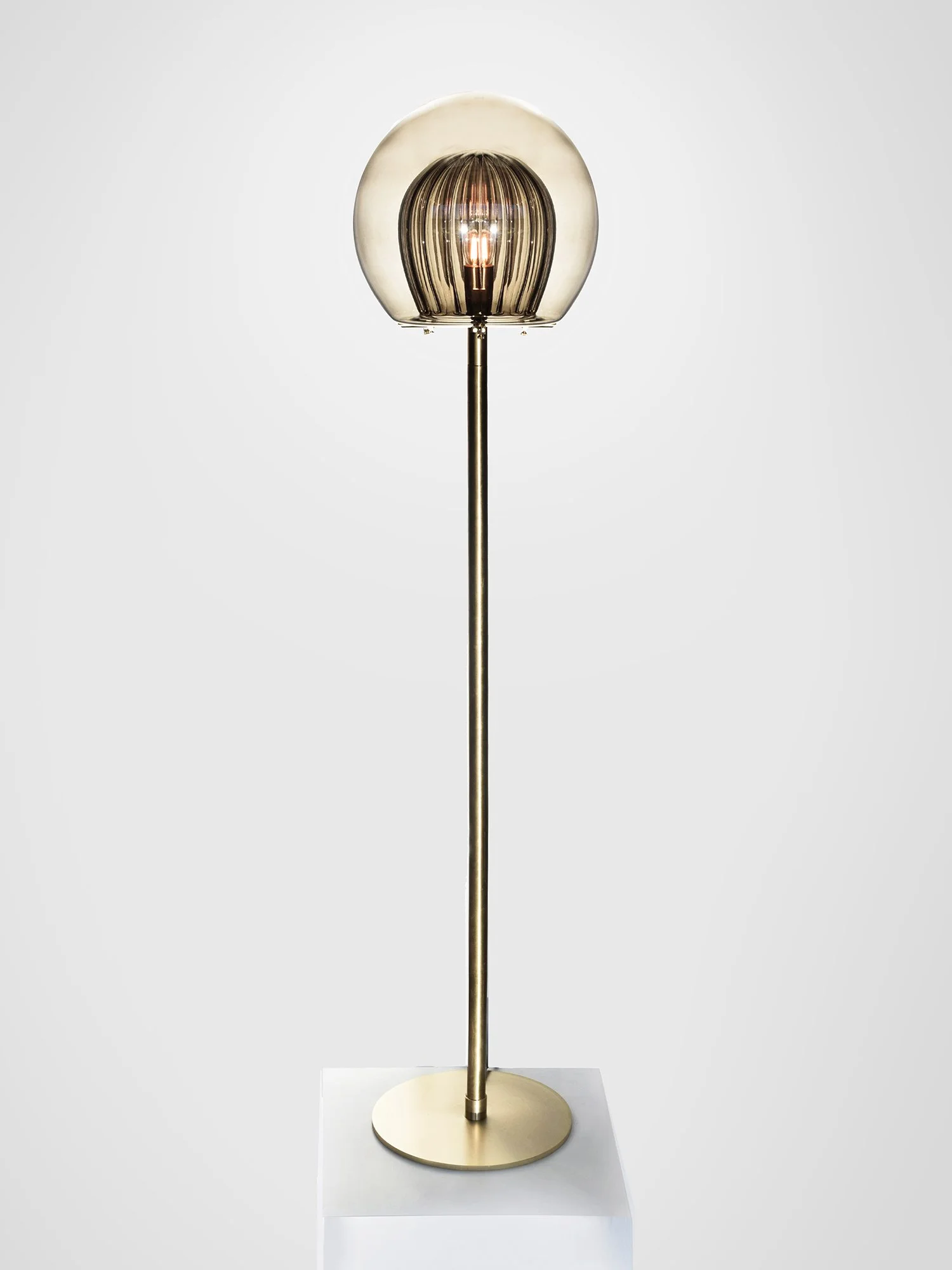 Designed with light-play in mind, the highly prized double walled borosilicate glass shade sparkles with colour as it refracts the rays passing through, emitting a warm playful glow that looks different from every angle.